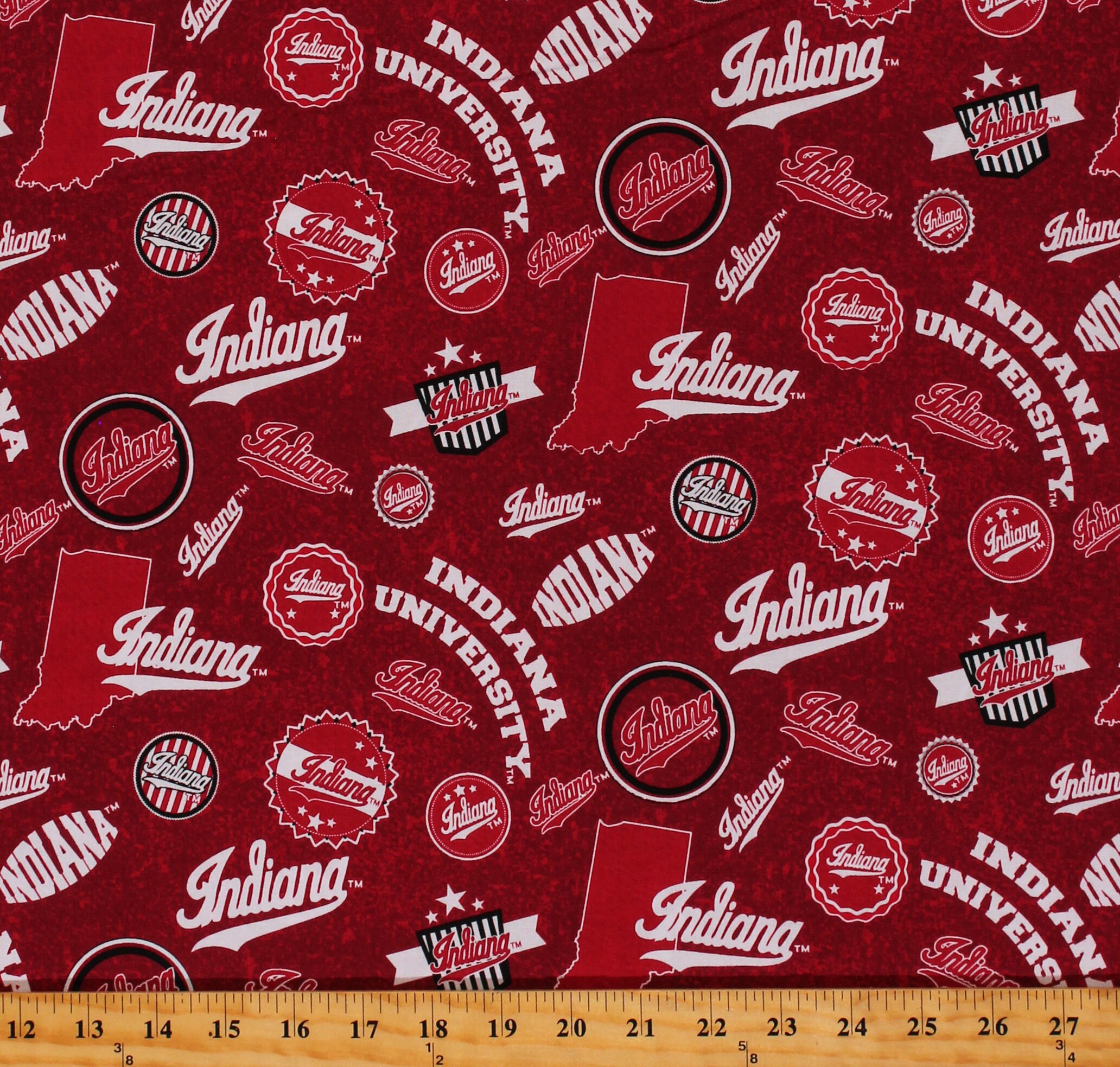 Cotton Indiana University Hoosiers Logos Red Tone On Tone College Sports Team Cotton Fabric Print By The Yard Ind 1178